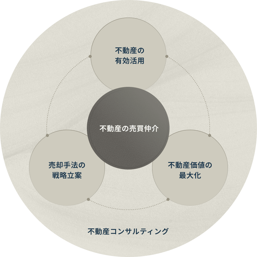 法人・個人を問わず、お客様の利益を最大化するという一点を追求し、単純な売買仲介からM&Aや権利調整といった専門的なコンサルティングまで、幅広くサポートします。
